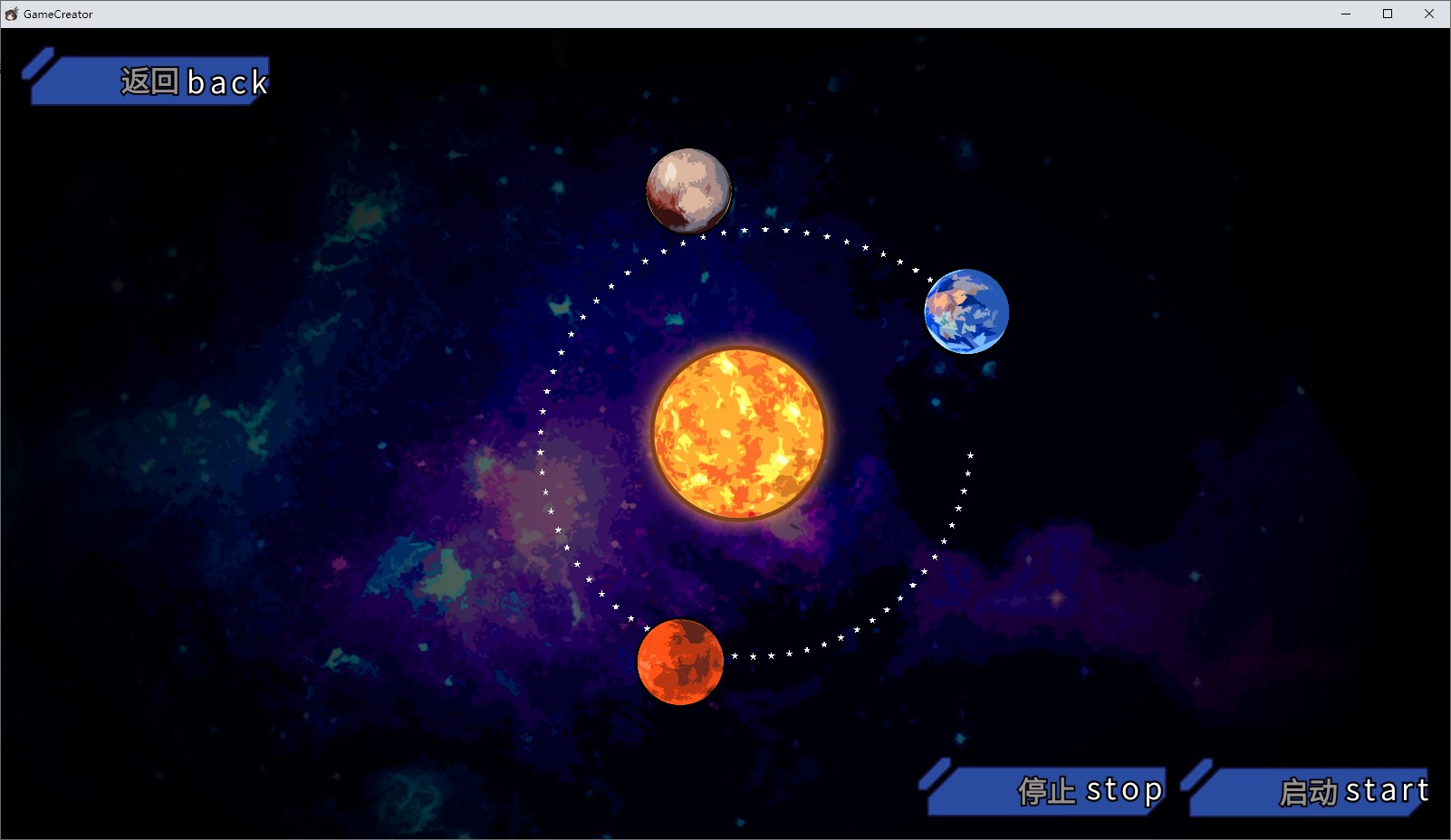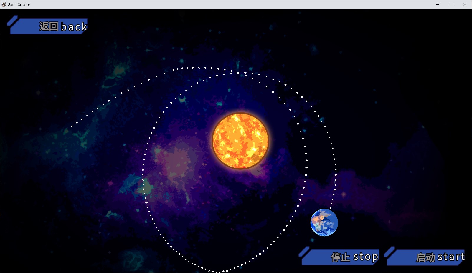 使用鼠标操作,拖动星球与箭头,确保地球绕着太阳转圈